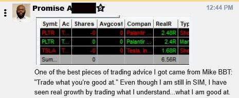 | BBT member shared his progress in trading after finding a niche to focus on:Â “Trade what you’re good at”.
