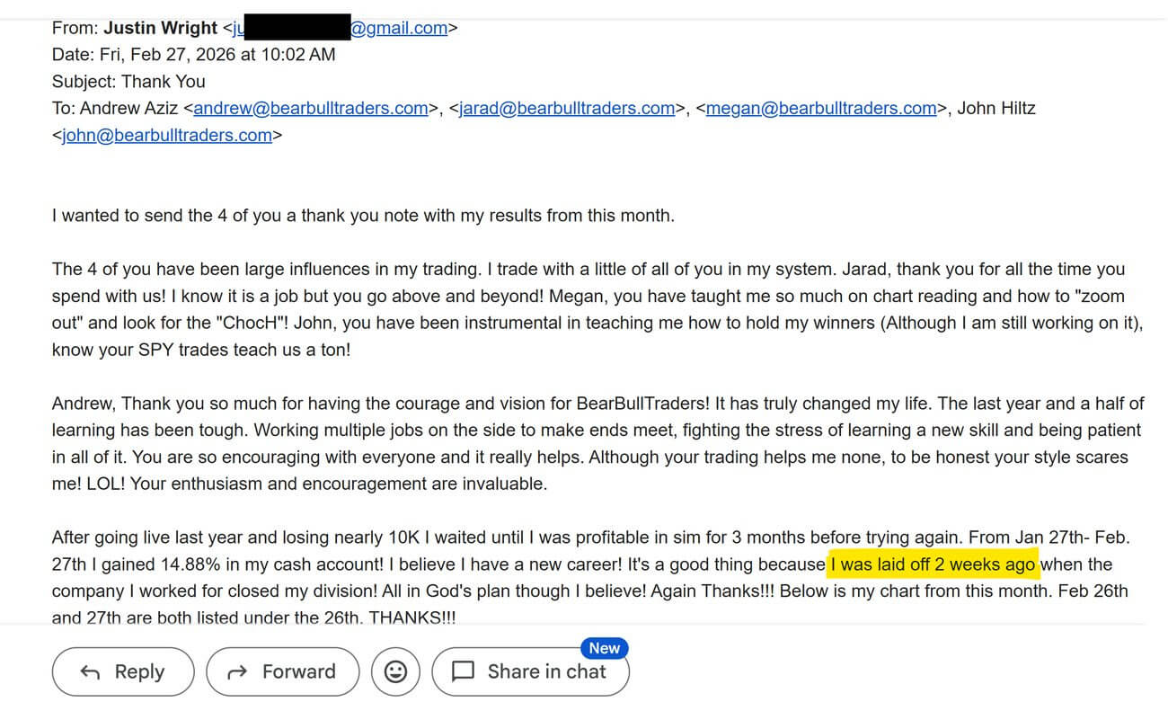 From my perspective, going back to SIM, journaling, and tracking performance really showed his discipline and patience. This skillset gives him a new career option after he got laid off. Instead of chasing quick profits, I want all traders to understand this: Trading is a high-income skill if you commit to learning a sustainable approach. You can use this skill through any market cycle, and through real life uncertainty. If you want to build a life-long career in trading, we are opening enrollment for the next Peak Capital Trading Bootcamp for those of you ready to take trading seriously. Peak Capital Trading Bootcamp (Starts May 4th, 2026)