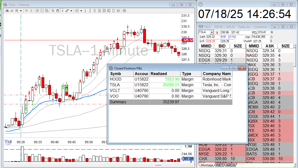 In our live chat today, I had a fantastic trading day. I traded Tesla, Coinbase (COIN), and Robinhood (HOOD). Tesla gave me a solid move, and I locked in over $30,000 in profit on that trade alone. COIN and HOOD, both very tied to the crypto market, also made all‑time highs and offered great opportunities.