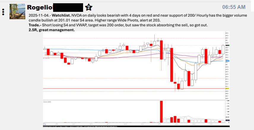 BBT member Rogelio took a ORB Short on $NVDA according to the premarket watchlist, combining this strategy with Thor’s Camarilla pivots!