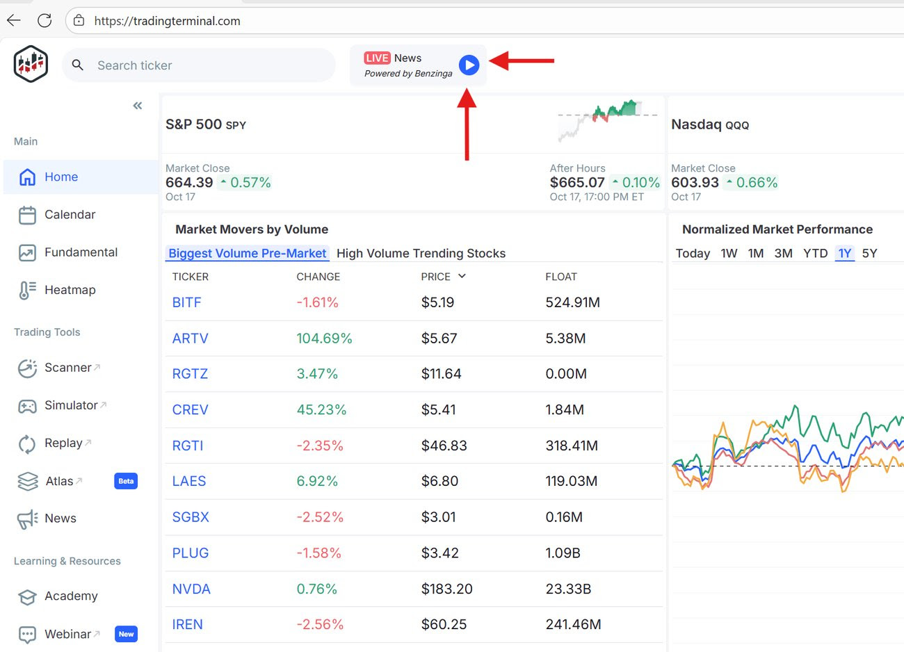 The live scanners on Trading Terminal are all created based on real-world trading strategies taught in our Bear Bull Traders community. These pre-built scanners help me find the stocks that are best for my setups.