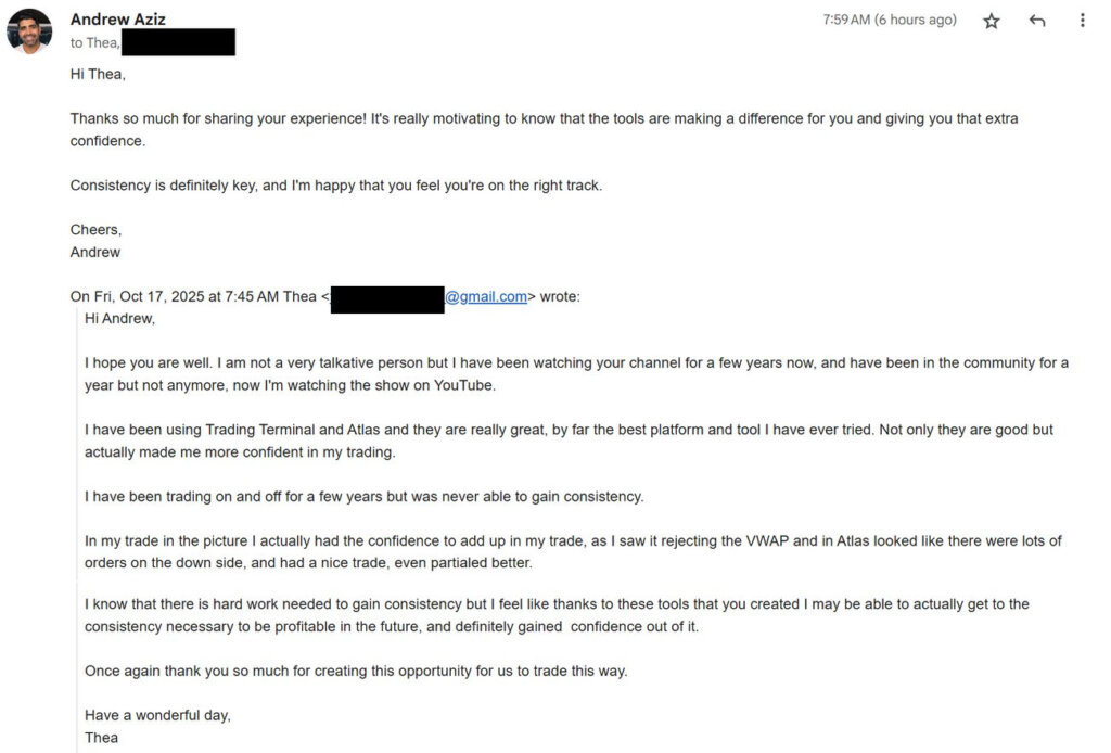 Lastly, I want to share a wholesome user feedback. What’s more important to me is the progress of this trader ever since they started using the tools on Trading Terminal. If you enjoy this reading, don’t forget to try Trading Terminal yourself.