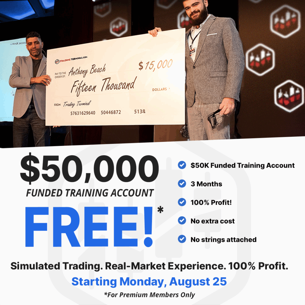Starting Monday, August 25, we’re offering a $50,000 simulated trading account for all Trading Terminal Premium members at no extra cost.