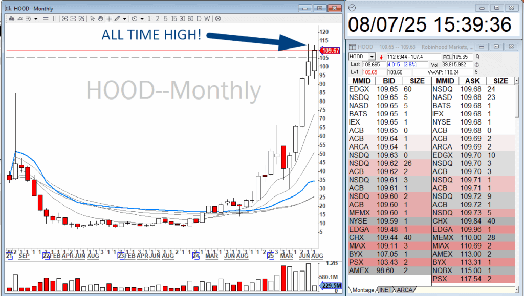 $HOOD hit a new all-time high on the monthly chart, breaking out with strong momentum after a long base.