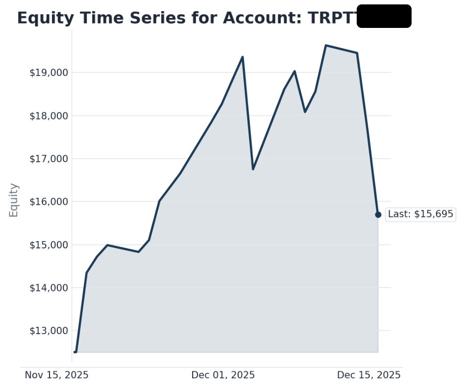 Today I had a really amazing trading day on Tesla. Tesla is moving toward $500 per share, its all time high. I was livestreaming my trading in the Bear Bull Traders chatroom and our community actually helped me notice something about my behavior today. Even though after my first trade I already made my money for the day, I was still tempted to take another trade on Tesla. I had to talk myself out of overtrading, and fortunately our BBT members held me accountable for my trading rules today. Usually, once you hit your daily profit target, you should stop trading and protect your gains. Today, Tesla actually continued to work really nicely. If I had taken that extra trade, I would have made a significant amount of money. But this is exactly the trap traders fall into. You should never focus on what you could have made. You should always focus on discipline, because discipline is what keeps you consistent over time. Our $50,000 funded training account is a perfect example of how discipline makes a huge difference. One of our top traders in this program doubled his account in less than a month, making over $10,000 in profit. That shows he is a strong trader and it also shows how effective our community is at teaching people how to trade. However, over the last two or three days, he had some major losses. The reason was overtrading and not sticking to his risk management rules. I am going to share a screenshot of his equity curve so you can clearly see what happens when discipline breaks down.
