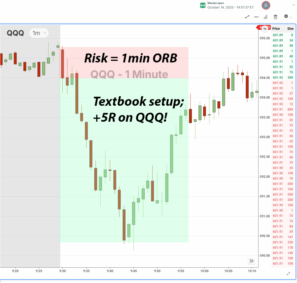 In the BBT chatroom, many traders who got the ORB setup from me took the 1-Min & 5-Min ORB setup on NVDA and TQQQ at the open. Some of them traded so much better than I did today using put options on NVDA.