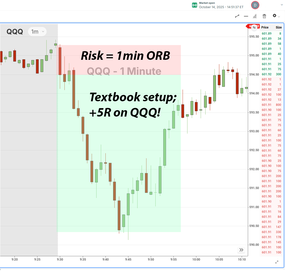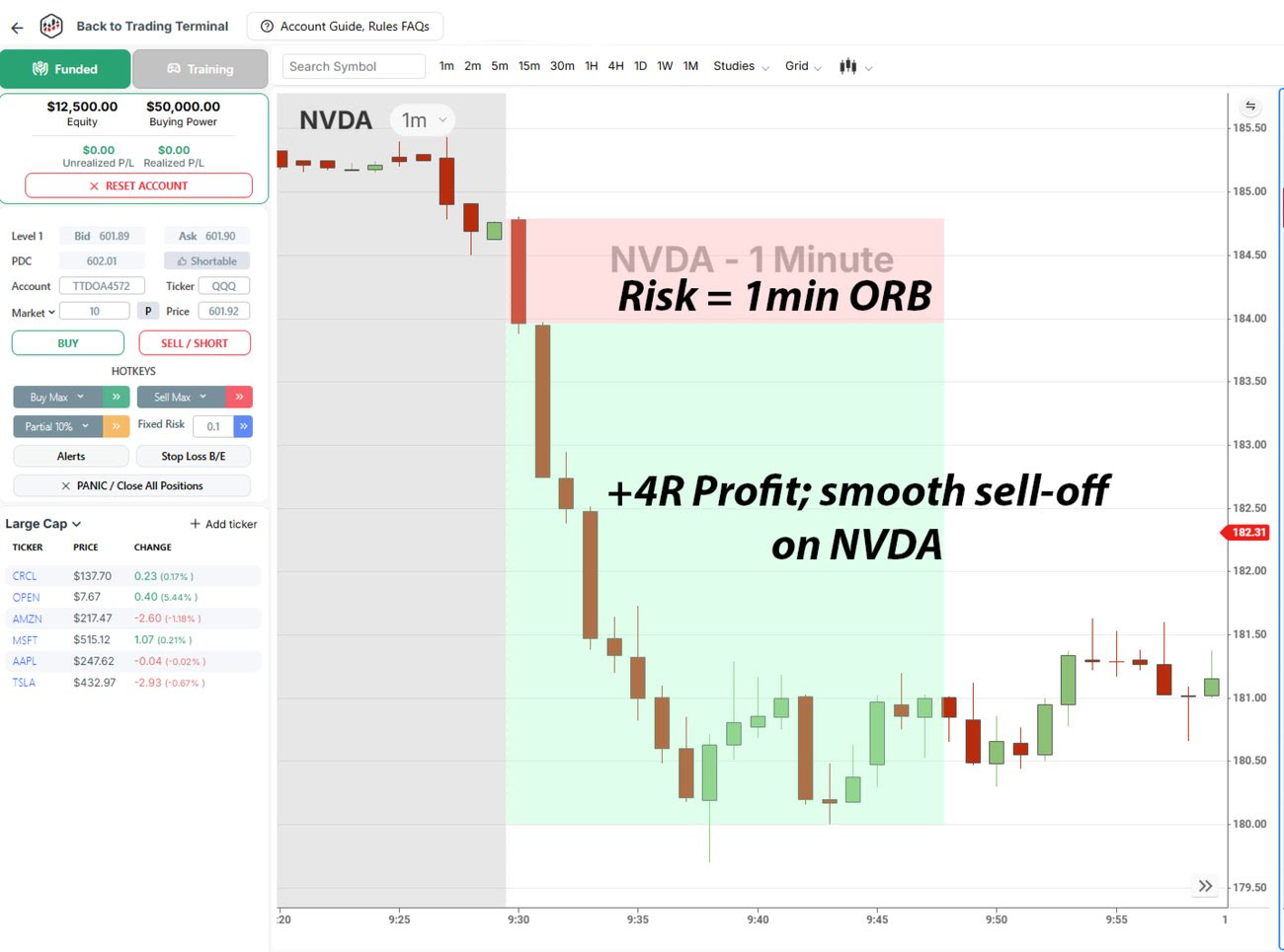 In the BBT chatroom, many traders who got the ORB setup from me took the 1-Min & 5-Min ORB setup on NVDA and TQQQ at the open. Some of them traded so much better than I did today using put options on NVDA.